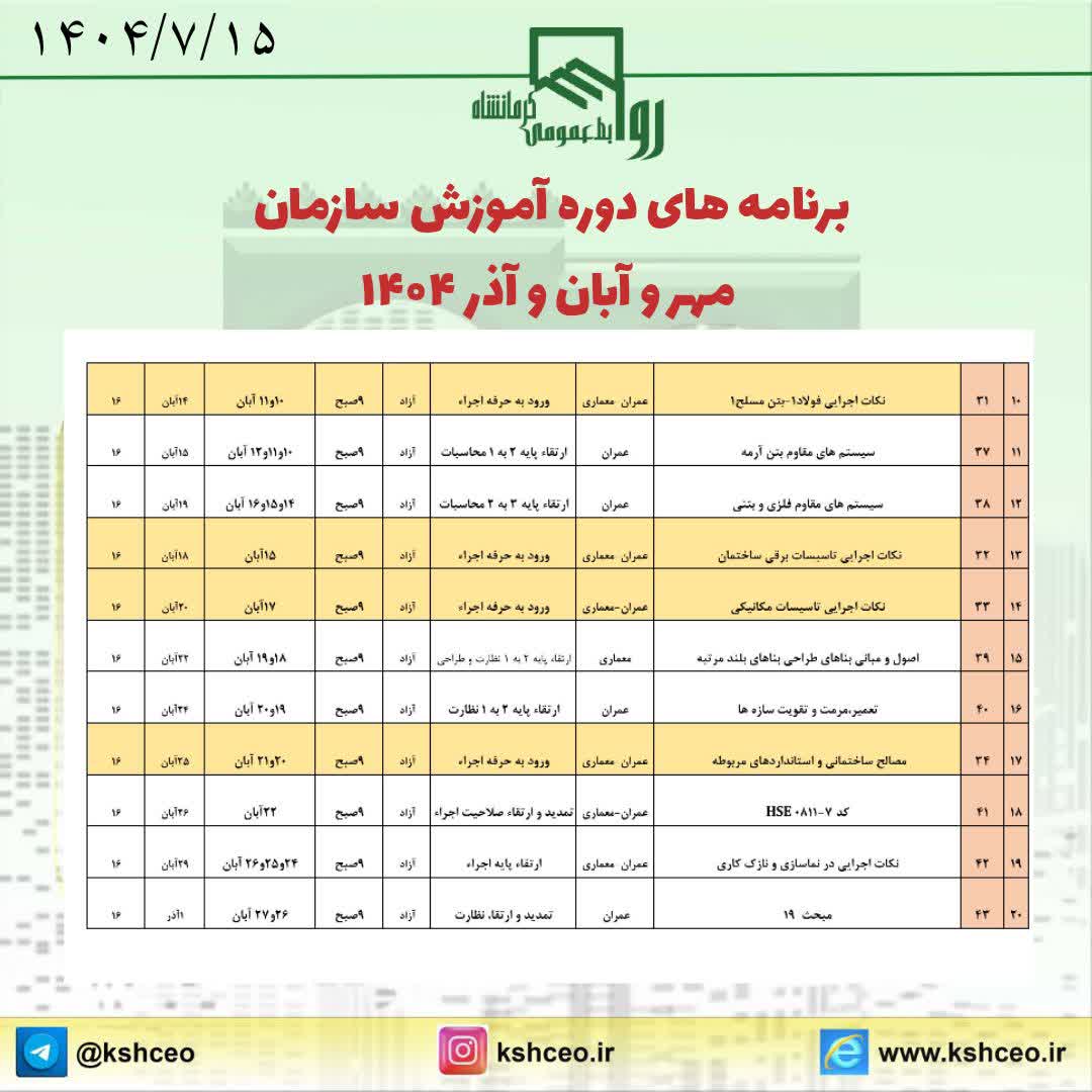 برنامه های دوره آموزش سازمان مهر و آبان و آذر ۱۴۰۴