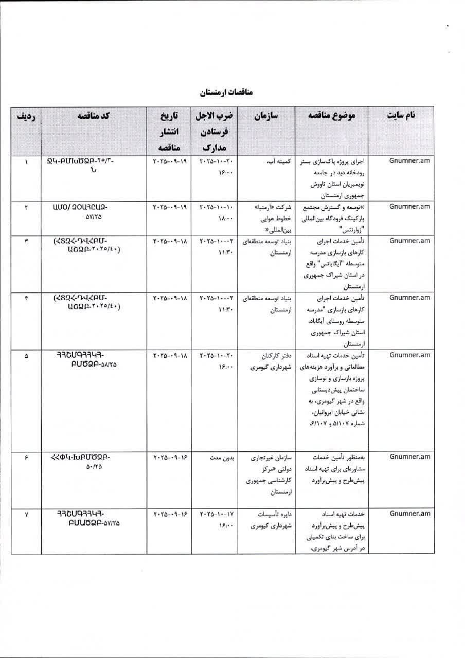 اطلاع رسانی به افراد و شرکت های توانمند جهت مشارکت در مناقصه کشور ارمنستان