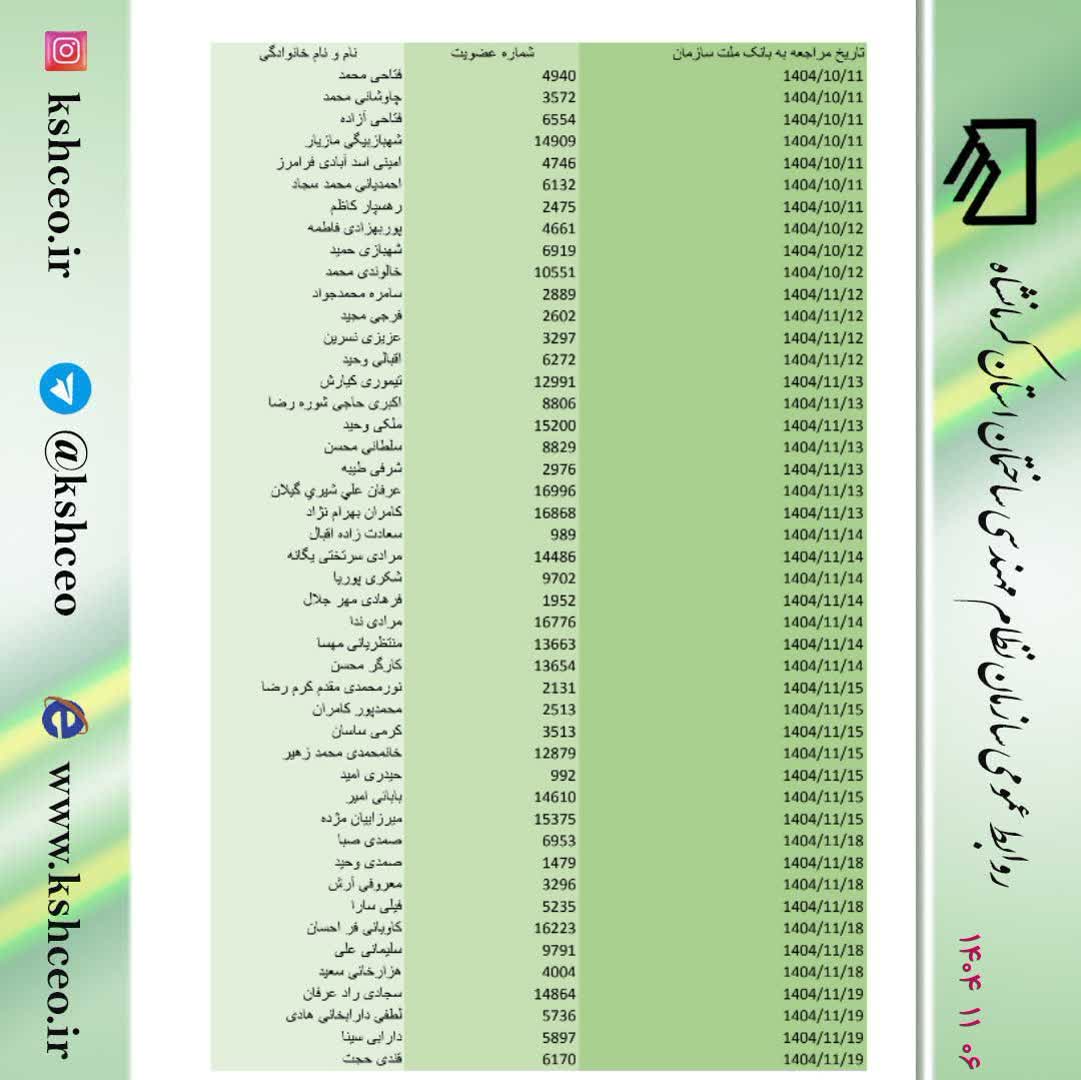 مدارک مورد نیاز و زمان مراجعه اعضای دارای اولویت وام بانک ملت بهمن ماه 1404 ( ناظرین سازمان )