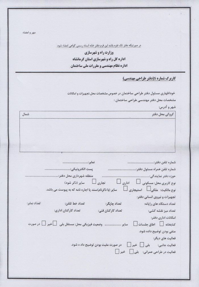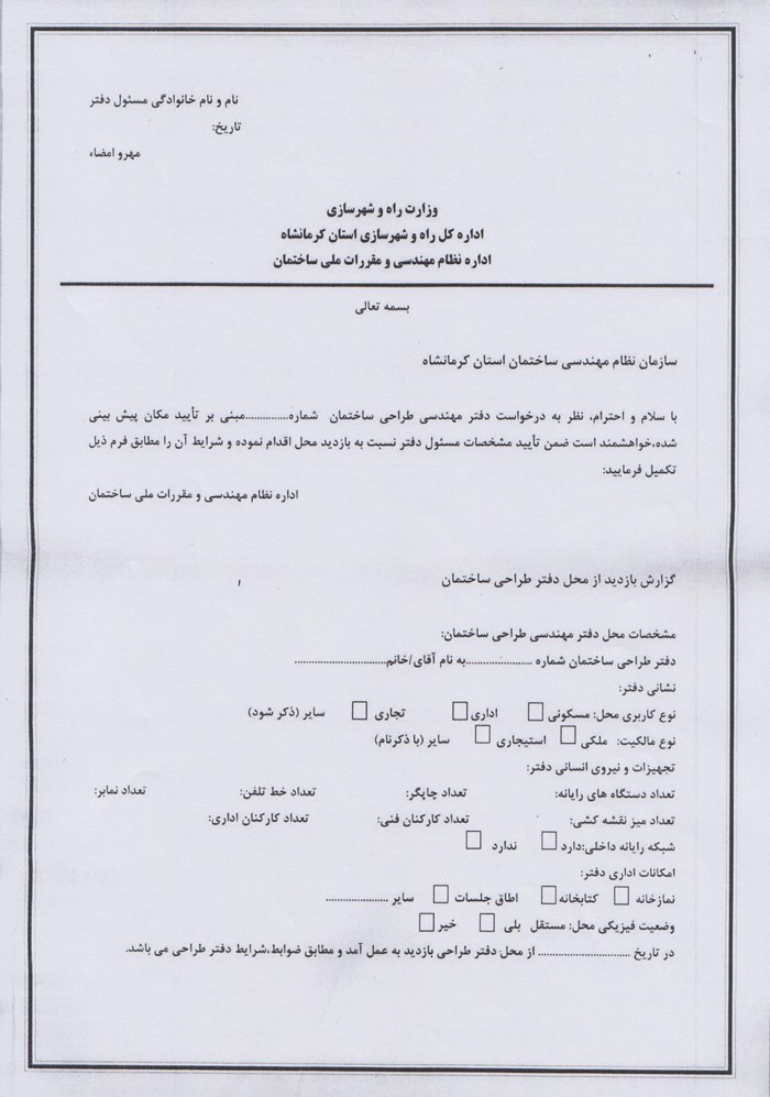 (جهت تمدید مجوز دفاتر طراحی ساختمان لازم است یک ماه قبل از اتمام اعتبار مجوز اقدامات لازم انجام پذیرد)