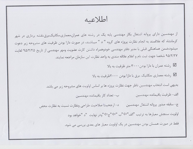فراخوان نظارت ساختمان های گروه« د » و ویژه
