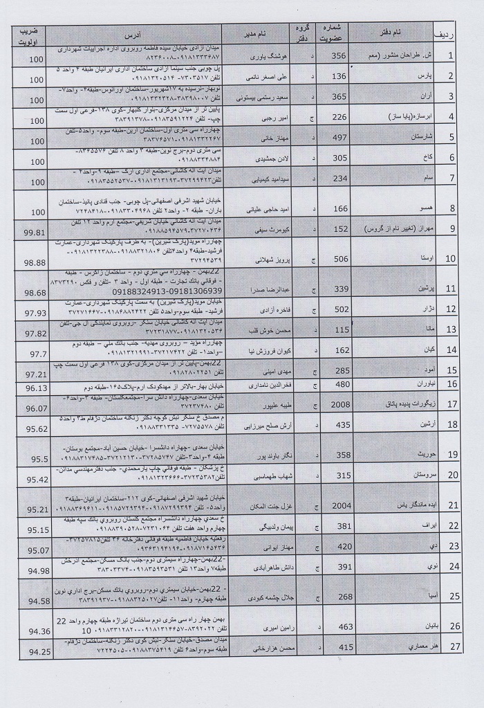 لیست اولویت بندی ارجاع نظارت در مورخ 95/5/4