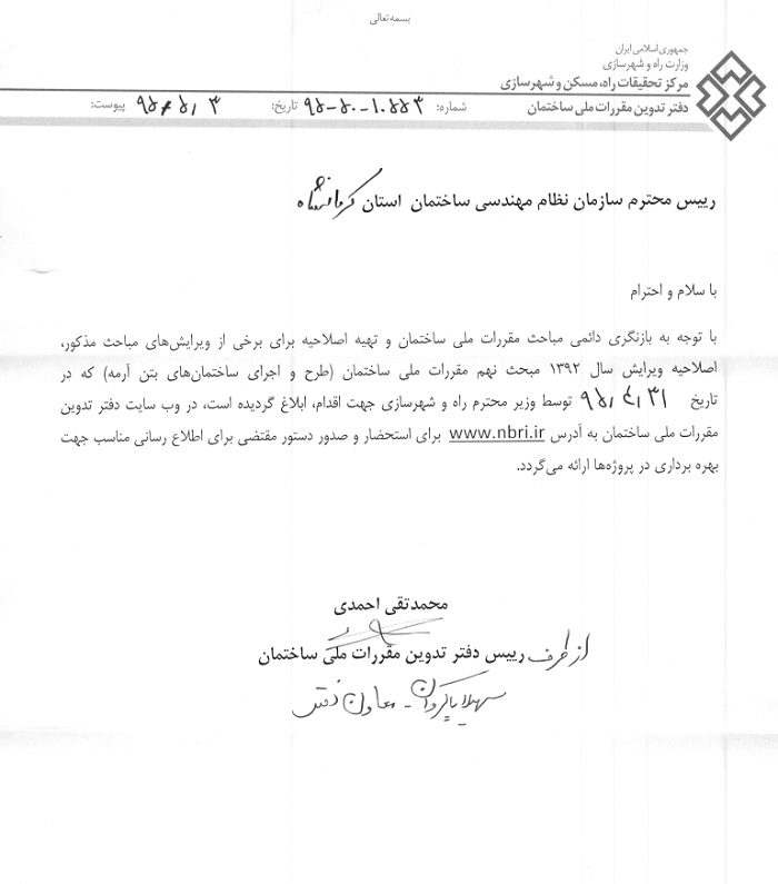 1395/05/20 09:25 تعداد بازدید:2991 اصلاحیه مربوط به ویرایش سال 1392 مبحث نهم مقررات ملی ساختمان نویسنده : روابط عمومی
