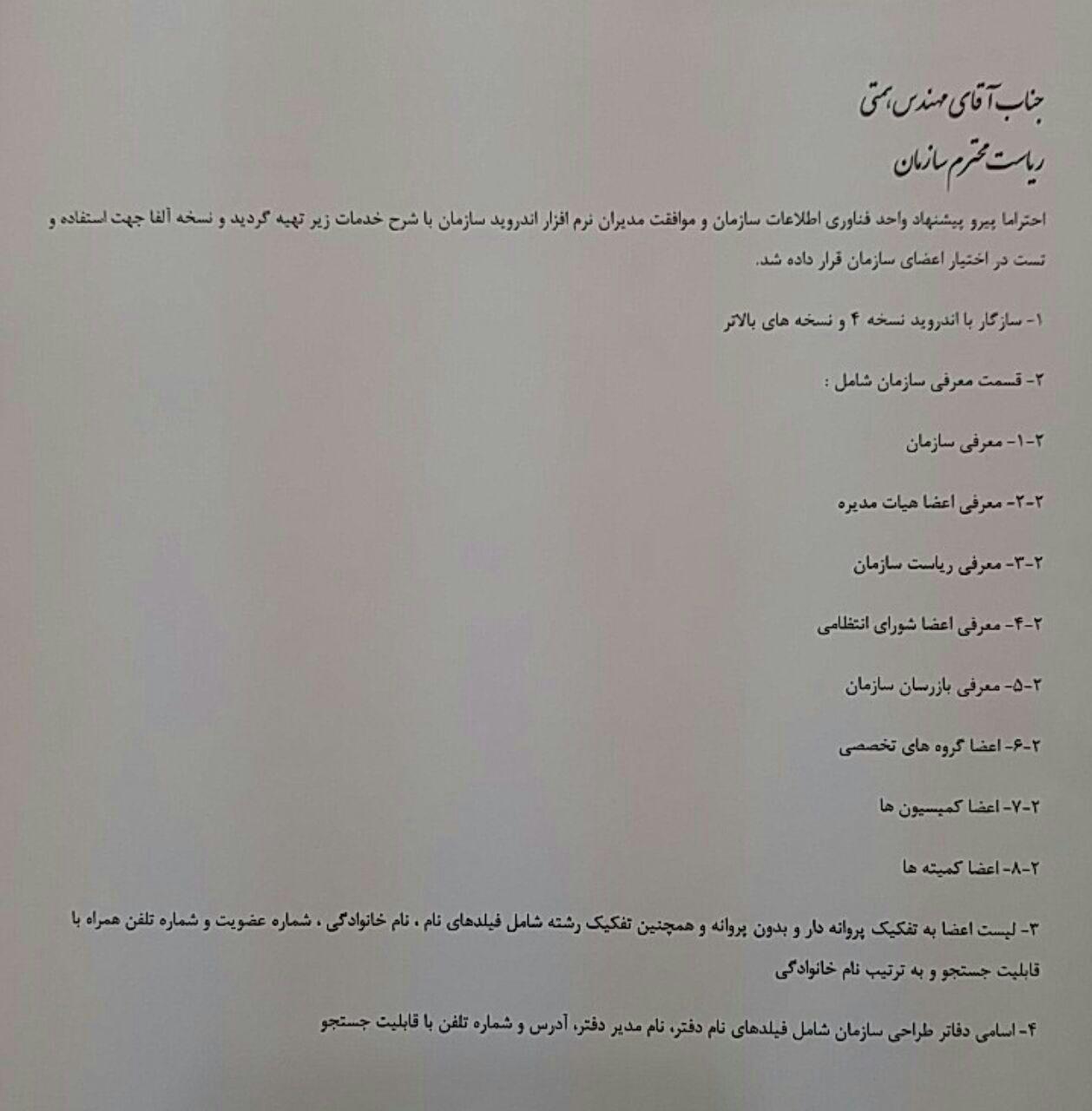 جهت استفاده از نرم افزار اندروید سامانه اطلاع رسانی سازمان فایل apk زیر را دانلود و نصب نمایید. در صورت مشاهده هرگونه خطا و یا نقص خواهشمند است مورد مذکور را به ایمیل زیر گزارش نمایید. nezamkshce@gmail.com