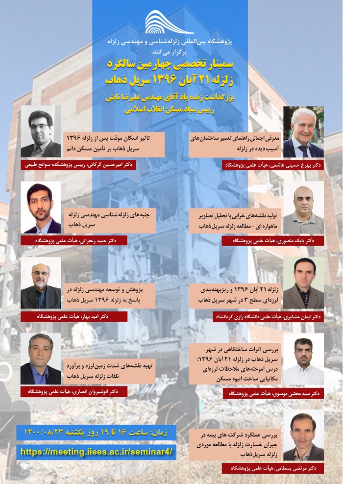 1400/08/20 08:40 تعداد بازدید:1059 سمینار تخصصی چهارمین سالگرد زلزله 21 آبان 1396 سرپل ذهاب نویسنده : روابط عمومی