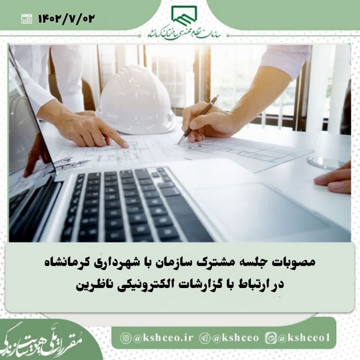 مصوبات جلسه مشترک سازمان با شهرداری کرمانشاه در ارتباط با گزارشات الکترونیکی مهندسین ناظر