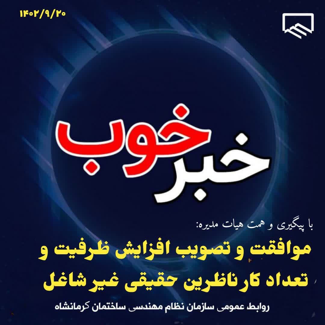 خبر خوب : موافقت و تصویب افزایش ظرفیت و تعداد کار ناظرین حقیقی غیرشاغل