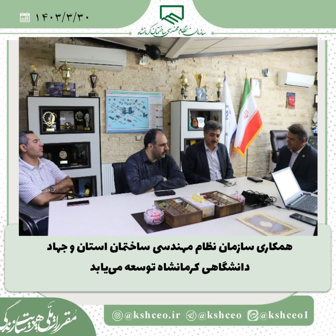 نشست مشترک مسئولان سازمان جهاددانشگاهی کرمانشاه و سازمان نظام مهندسی ساختمان با هدف ارتقاء خدمات نظام مهندسی در استان برگزار شد.