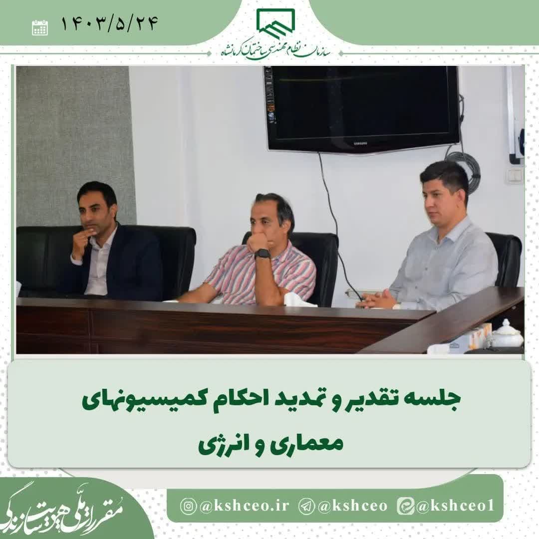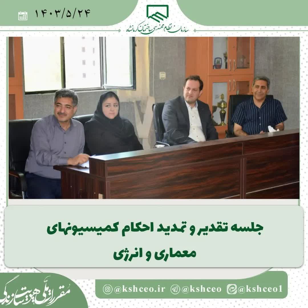 ظهر دیروز چهارشنبه مورخ ۱۴۰۳/۵/۲۴ و با حضور رئیس سازمان آقای مهندس زارعی، خانم دکتر طاهری عضو هیات مدیره از زحمات و تلاشهای اعضای کمیسیونهای معماری و انرژی سازمان نظام مهندسی ساختمان کرمانشاه تقدیر و تشکر شد.