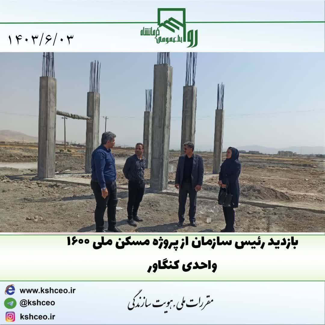 صبح پنجشنبه مورخ ۱۴۰۳/۶/۰۱ رئیس سازمان آقای مهندس زارعی در جلسه شورای مسکن که در محل فرمانداری شهرستان کنگاور با مسئولین استان و شهرستان برگزار می شد حضور یافت و به بحث و بررسی پیرامون مسائل ساخت و ساز در شهرستان کنگاور پرداختند.پس از جلسه مذکور رئیس سازمان با حضور در محل پروژه مسکن ملی ۱۶۰۰ واحد کنگاور از روند پیشرفت پروژه مذکور بازدید به عمل آوردند.