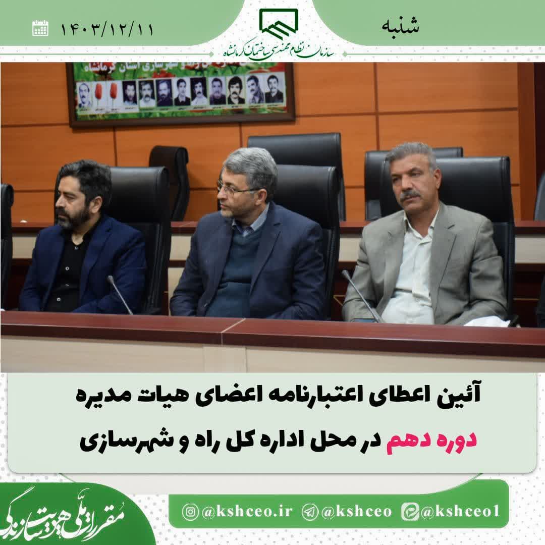 مهندس امینی معاون مسکن و ساختمان و مهندس غلامی رئیس حراست اداره کل نیز ضمن تبریک به منتخبین خواستار حرکت سازمان بر مدار قانون شدند و آمادگی اداره راه و شهرسازی استان در جهت کمک به ارتقاء سازمان نظام مهندسی ساختمان کرمانشاه را ابراز نمودند.