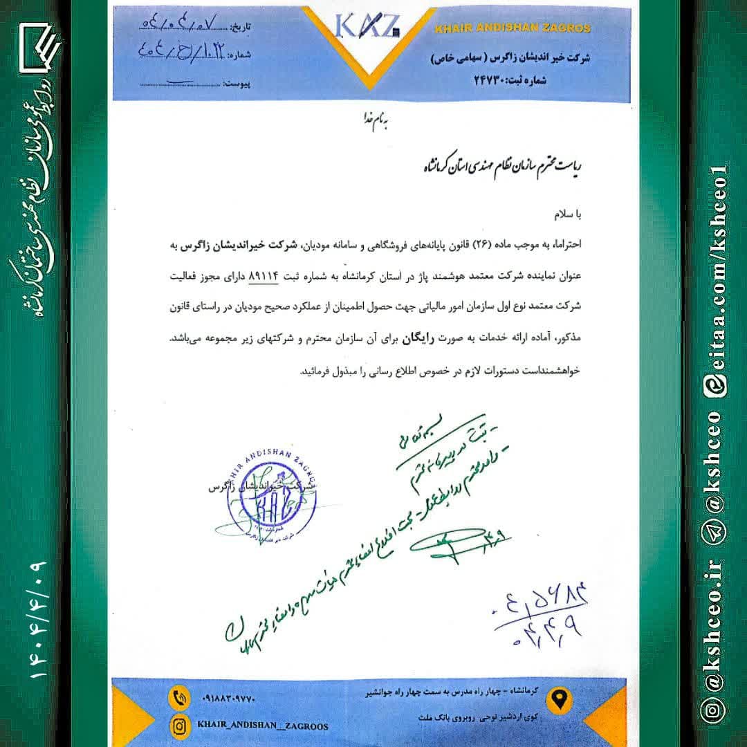 مکاتبه با موضوع انجام خدمات رایگان مالیاتی برای اعضای سازمان