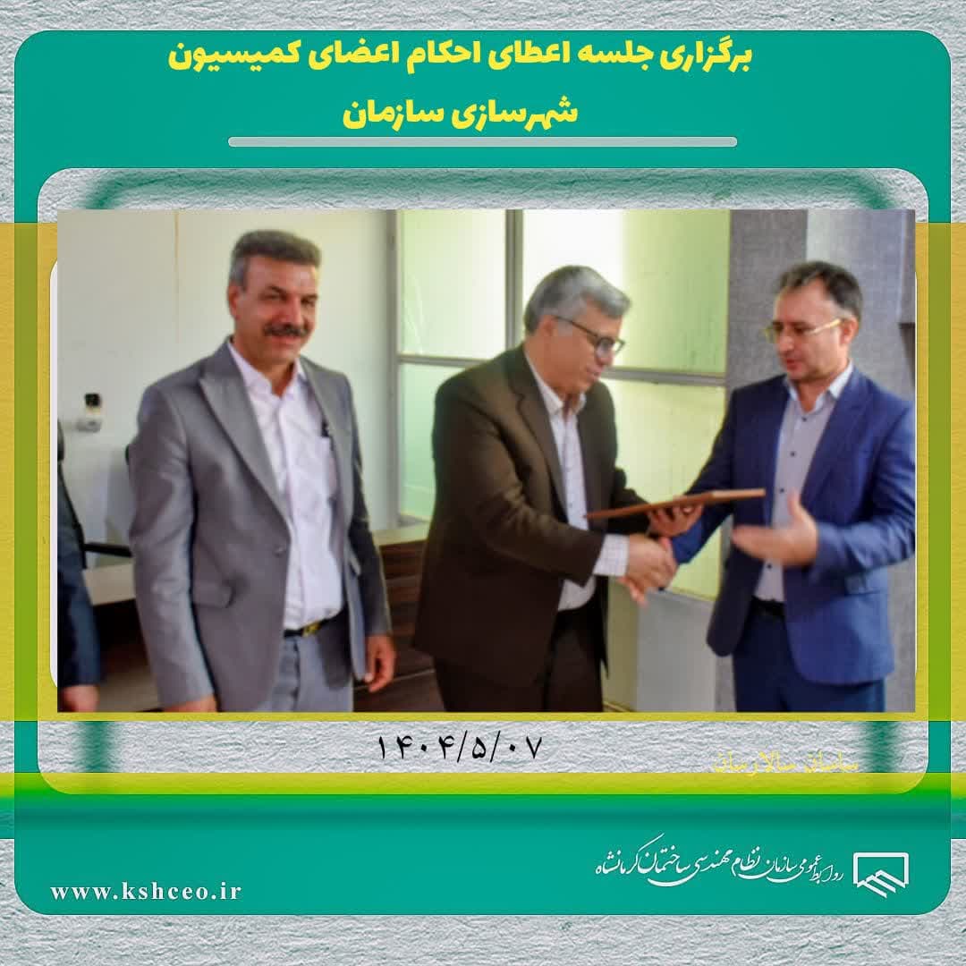 جلسه اعطای احکام اعضای کمیسیون شهرسازی دهمین دوره هیات مدیره سازمان نظام مهندسی ساختمان استان کرمانشاه برگزار شد