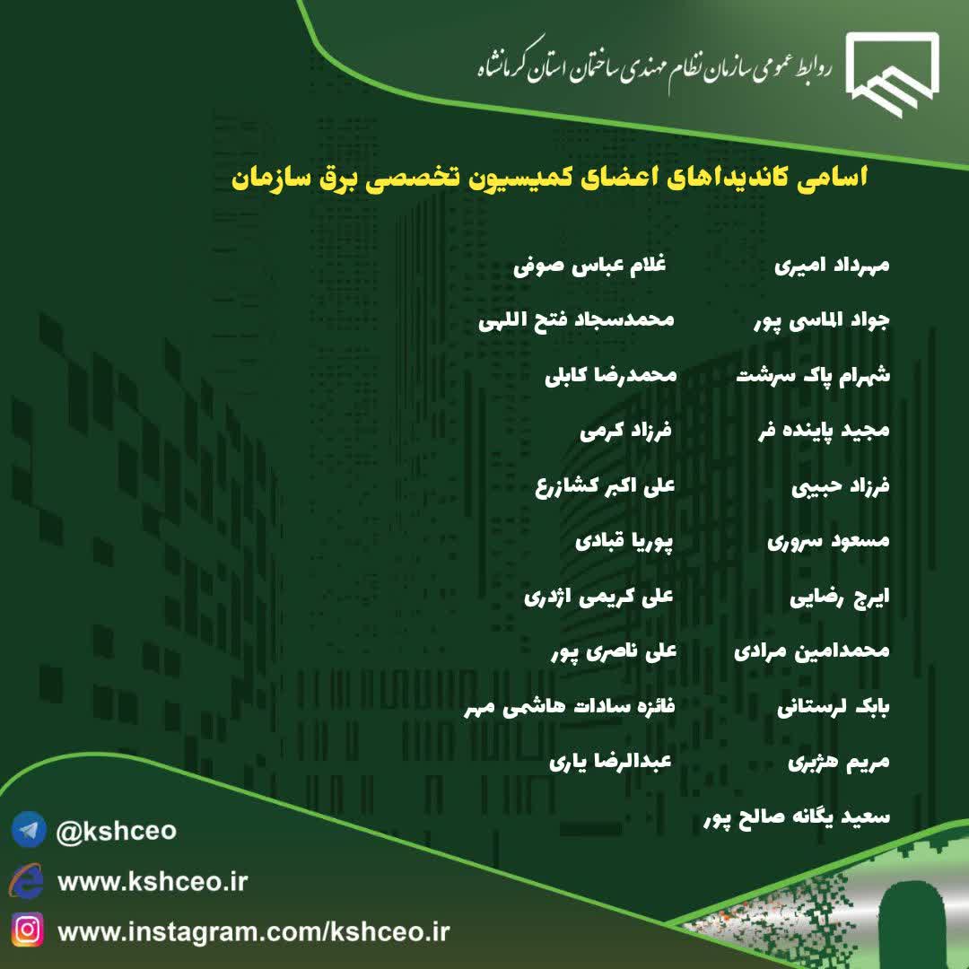 اسامی کاندیداهای اعضای کمیسیون تخصصی برق سازمان