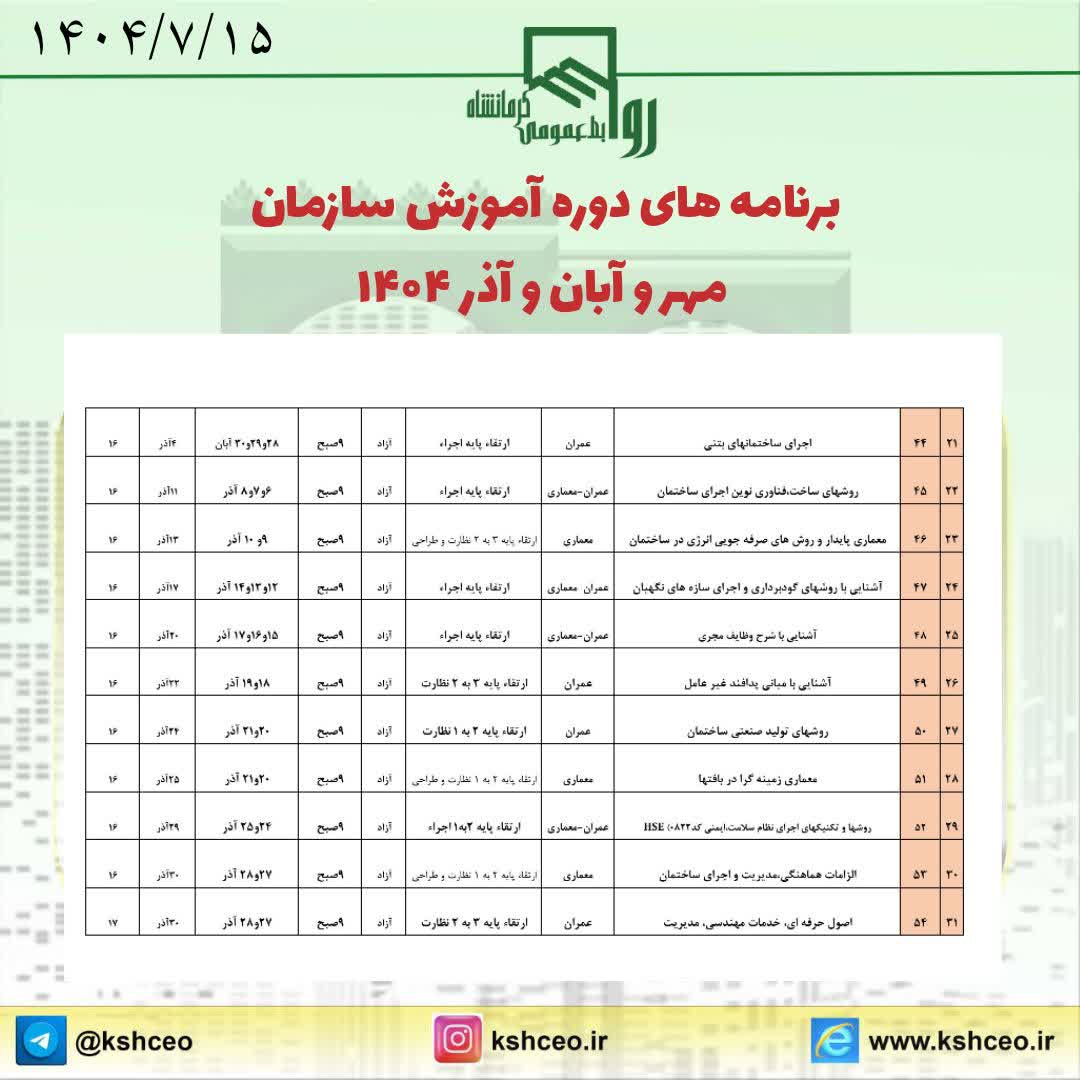 برنامه های دوره آموزش سازمان مهر و آبان و آذر ۱۴۰۴