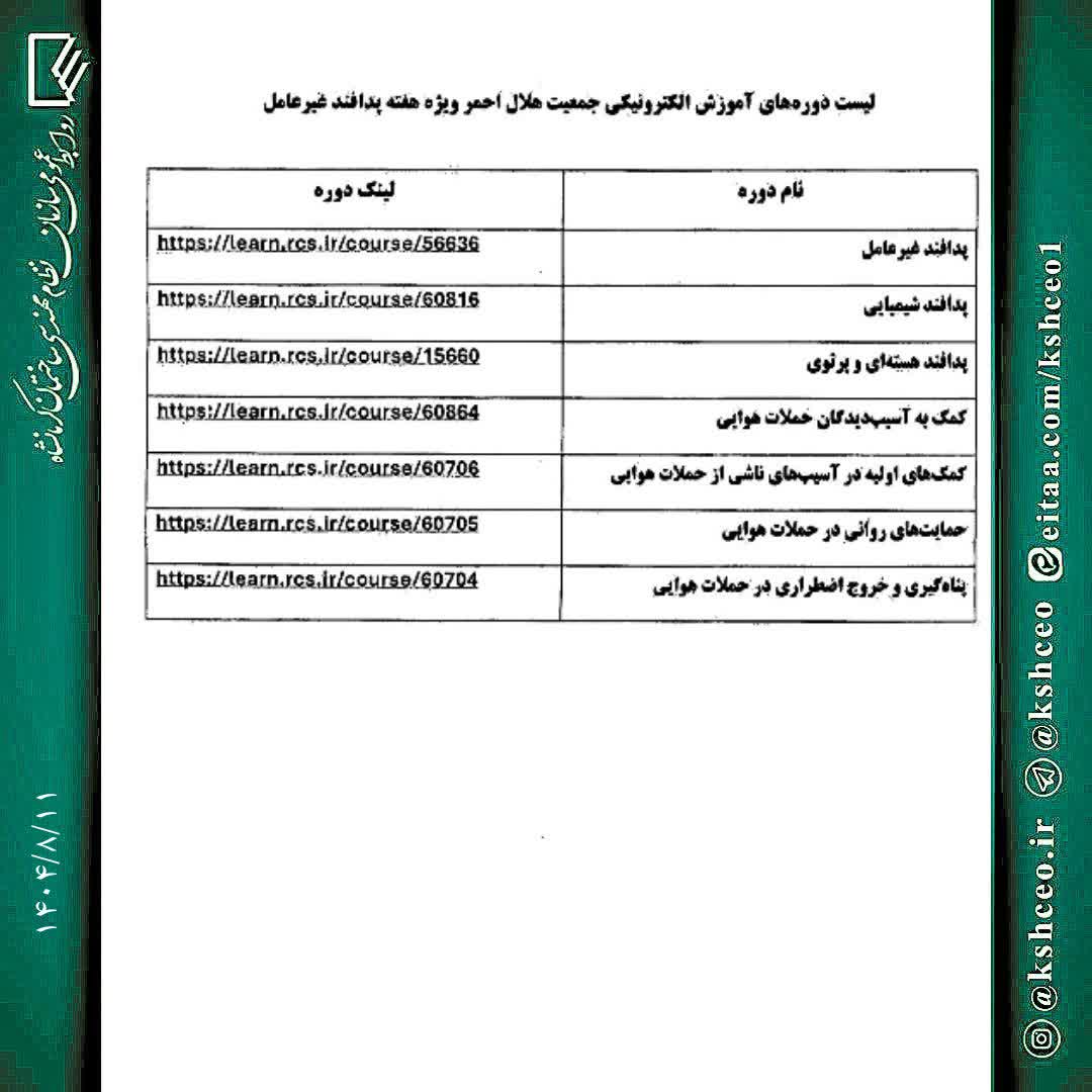 اطلاع رسانی در خصوص دوره های آموزشی/مجازی و رایگان جمعیت هلال احمر کشور
