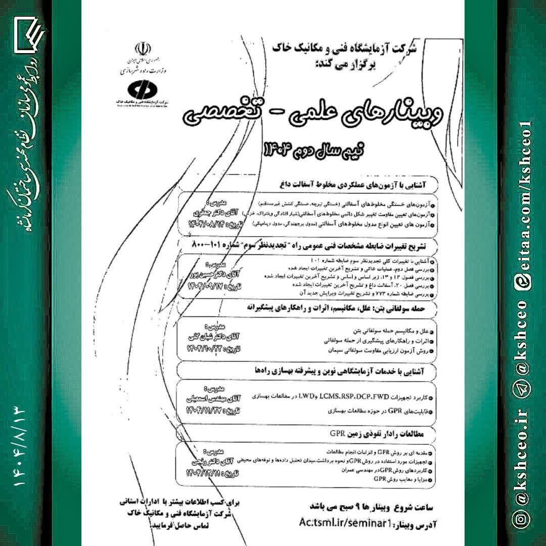 اطلاع رسانی وبینارهای تخصصی شرکت آزمایشگاه فنی و مکانیک خاک