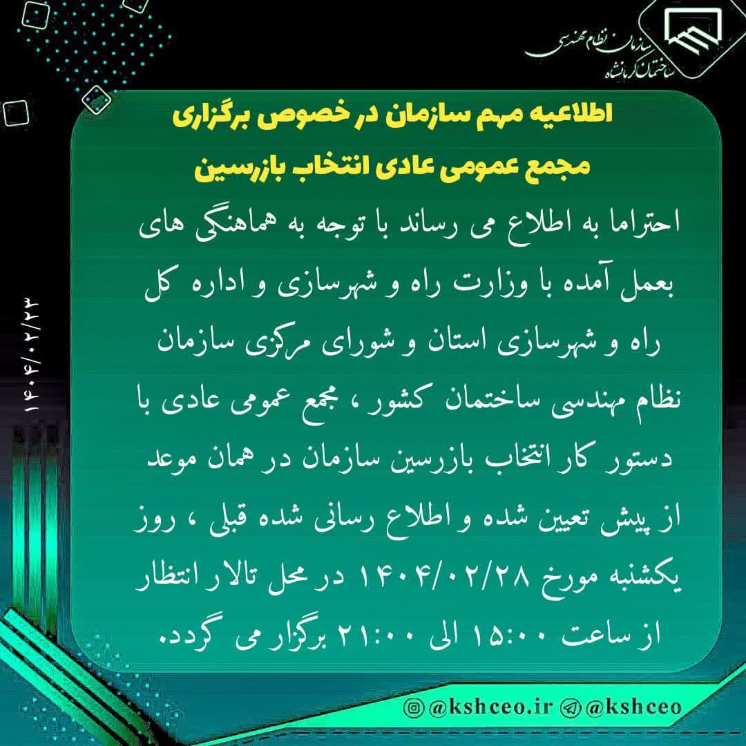 آگهی دعوت به مجمع عمومی سازمان نظام مهندسی ساختمان استان کرمانشاه