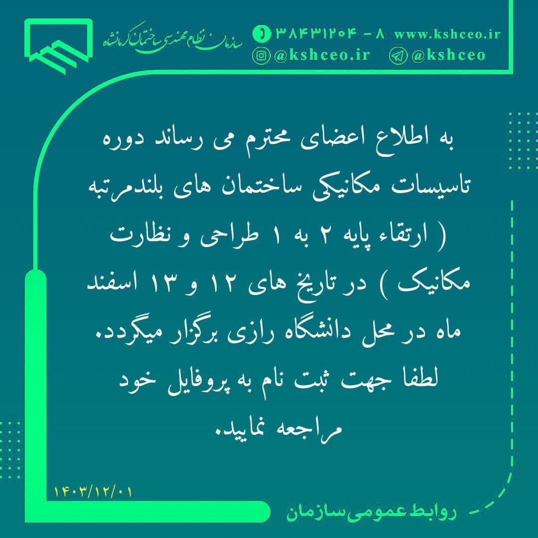 برنامه تکمیلی دوره های آموزش ، تمدید و ارتقاء پایه ، مردادماه ۱۴۰۴