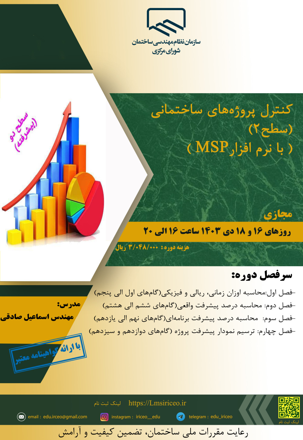 دوره آموزشی/مجازی" کنترل پروژههای ساختمانی (سطح۲)(با نرم افزارMSP)"