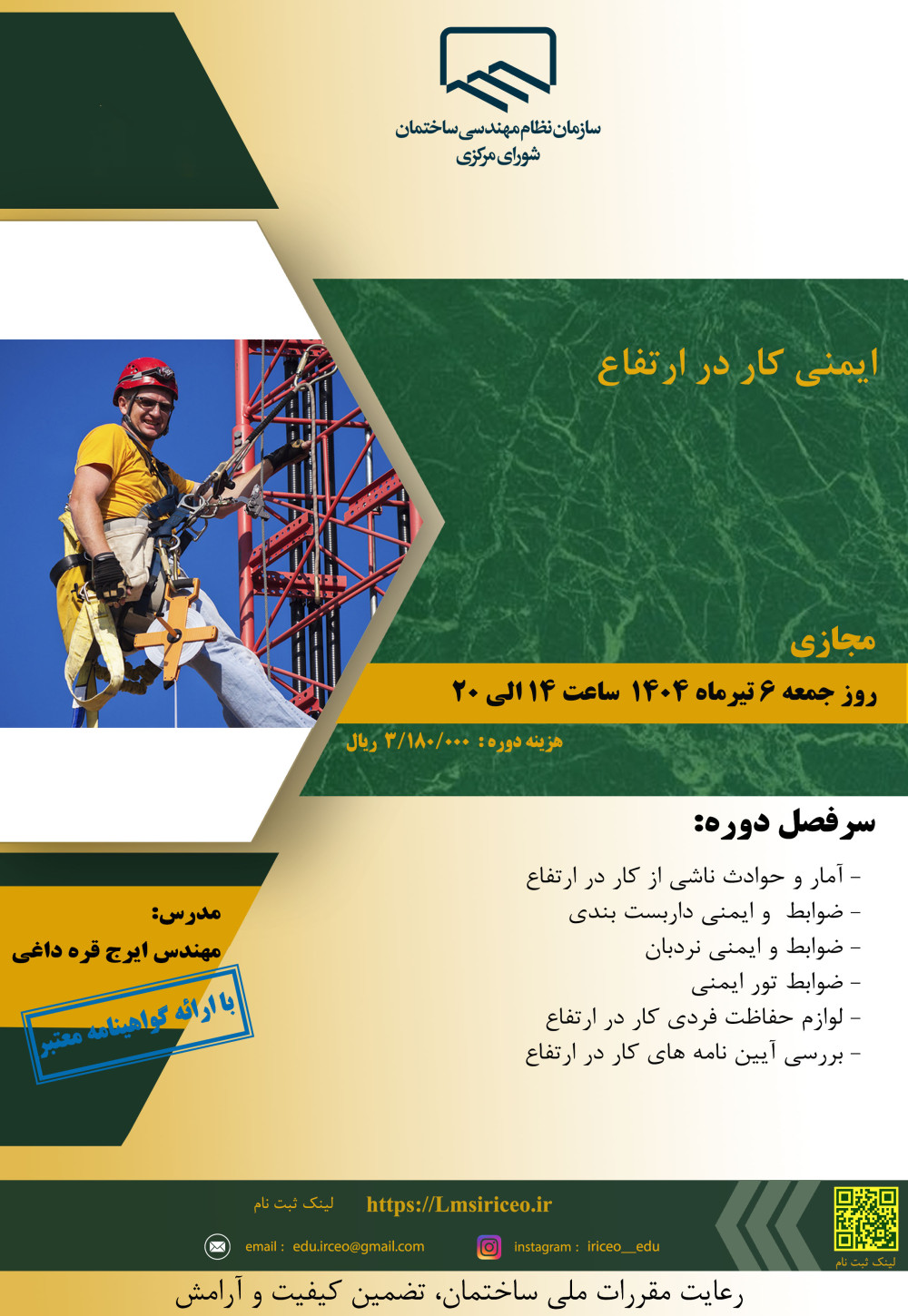 دوره آموزشی/مجازی با عنوان "ایمنی کار در ارتفاع"
