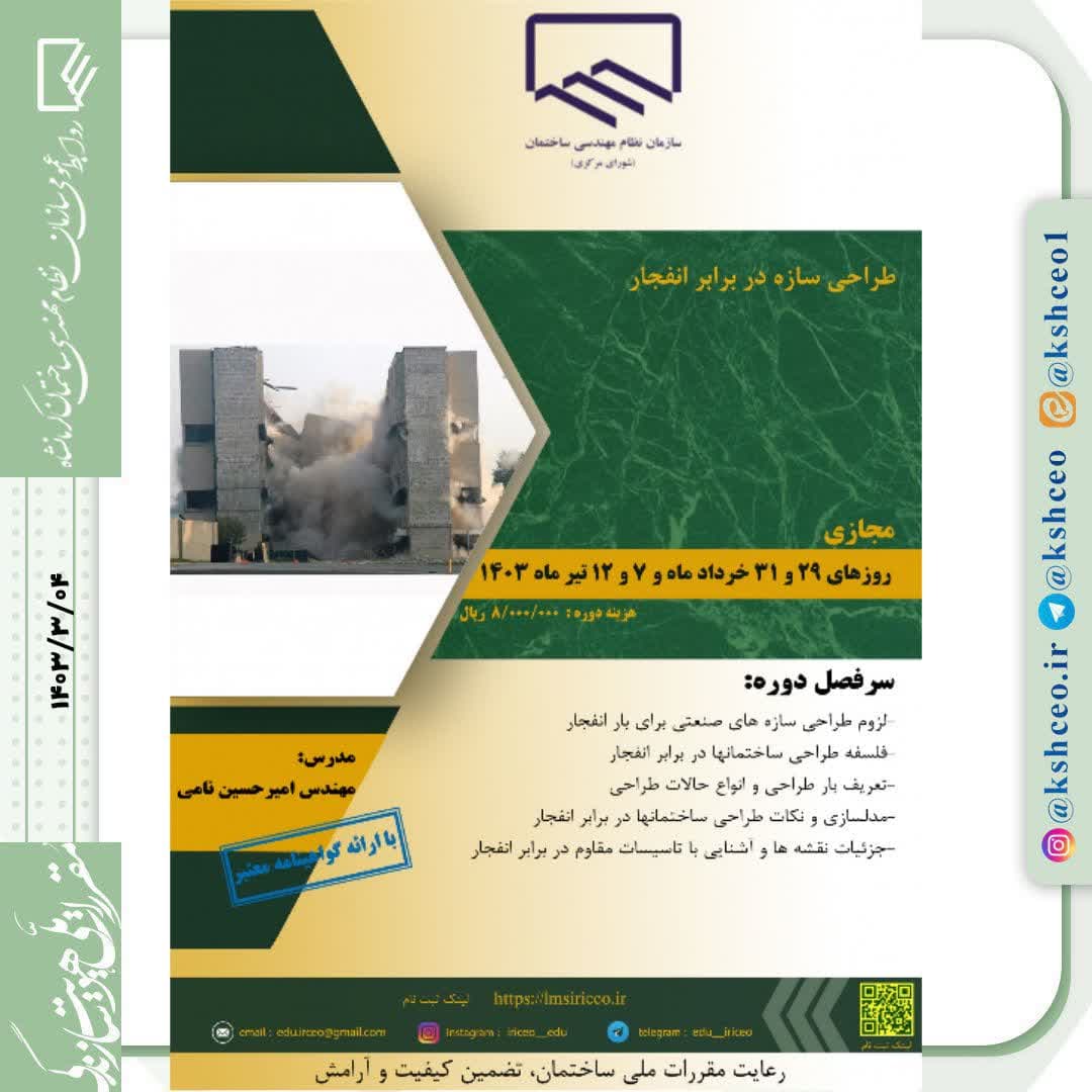 برنامه تکمیلی دوره های آموزش تیر و مردادماه ۱۴۰۳ سازمان نظام مهندسی ساختمان استان کرمانشاه