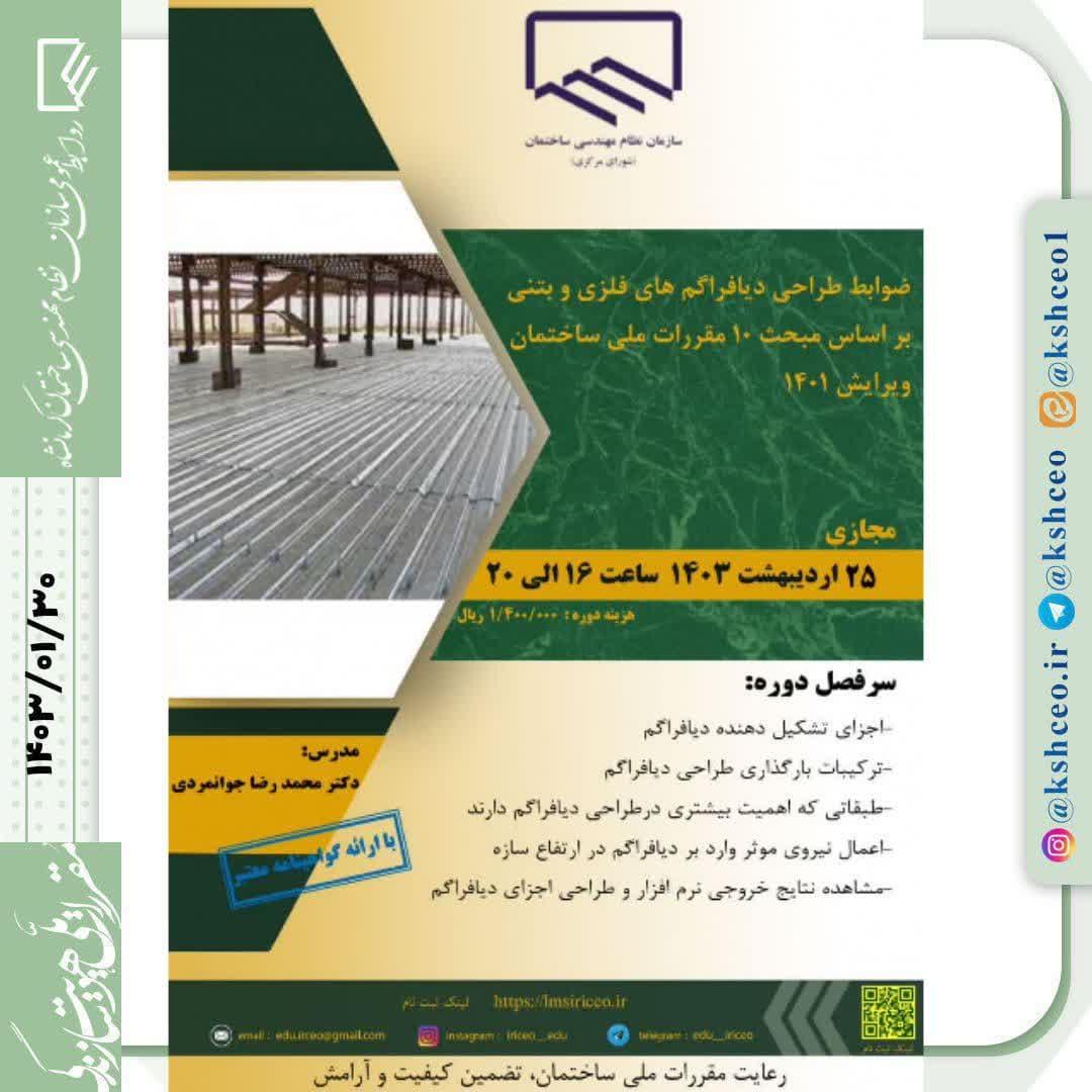 دوره آموزشی/مجازی" معرفی تکنیک ها و ارزیابی کیفی سیستم های مقاوم سازی و همچنین محافظت سازه های فلزی در برابر حریق"